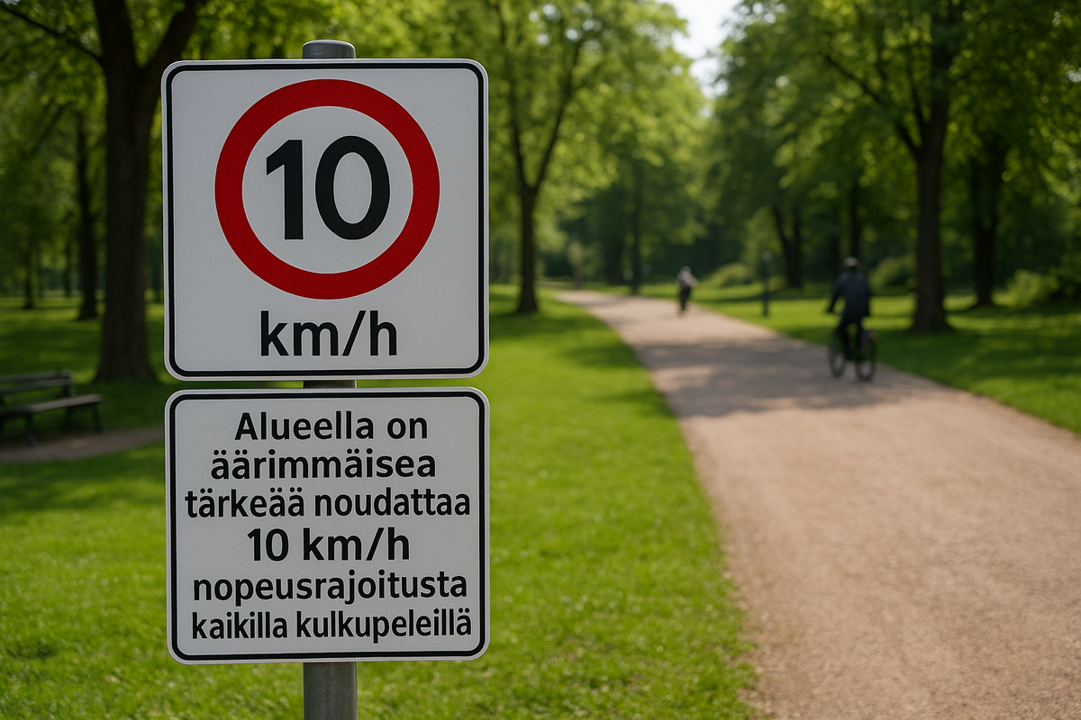 Siirtolapuutarha-alueella on äärimmäisen tärkeää noudattaa 10 km/h nopeusrajoitusta kaikilla kulkuvälineillä. Alue on puistoa, paljon jalankulkijoita, lapsia leikkimässä ja sisältää useita vaaranpaikkoja, joten erityinen varovaisuus on tarpeen.